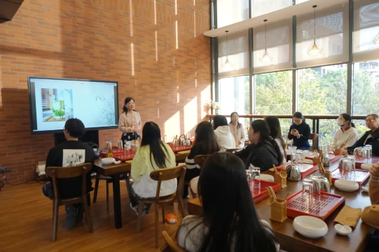 在最后一节茶艺课程前,学习了茶文化的同学们向外教疯狂安利了中国茶艺,引得外教们心动不已,也前来感受中国传统茶道文化,他们跟随茶艺老师一同赏茶、闻茶、饮茶、品茶,交流中西方茶艺的不同,感受世界茶文化的独特魅力。